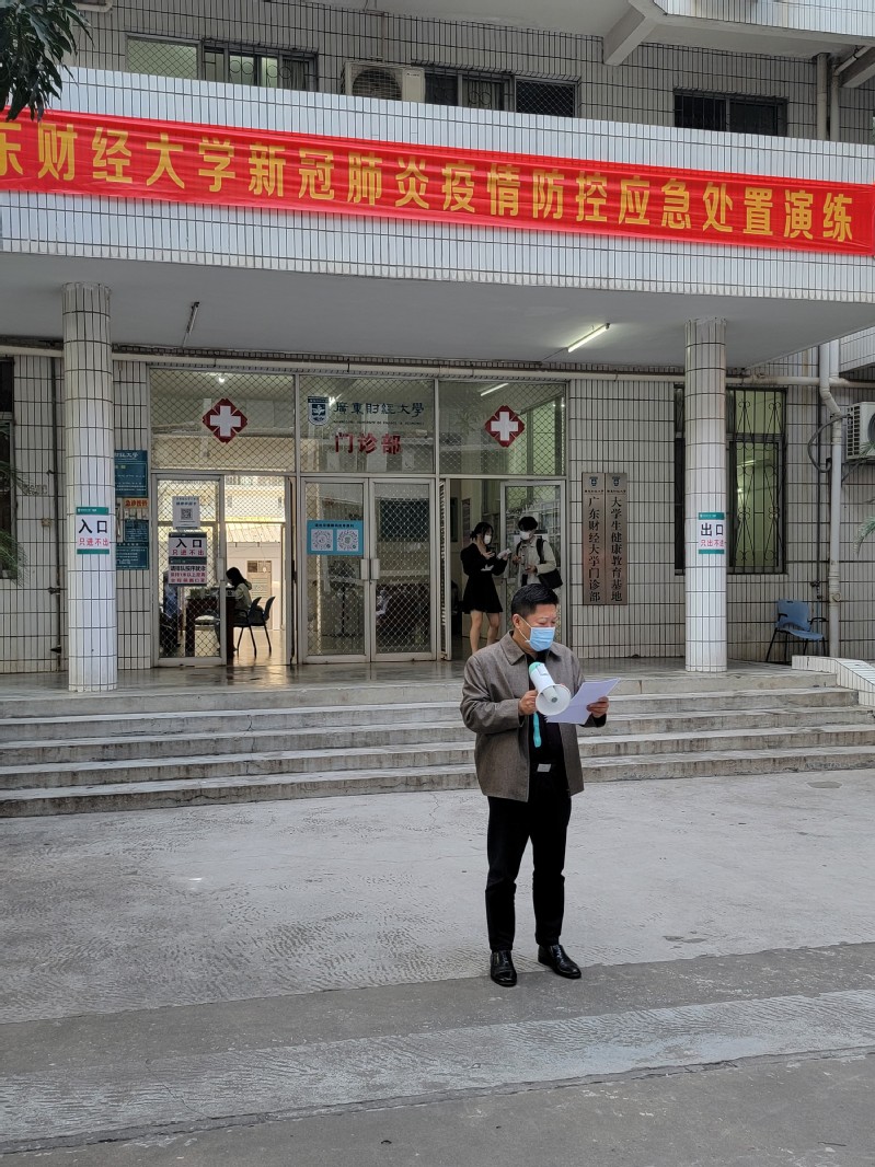 为防止新冠肺炎疫情的输入和扩散,保障师生员工的身体健康和生命安全,维护学校校园安全稳定,根据广东省疫情防控工作要求,广东财经大学在11月10日(周三)下午开展了2021年秋季学期第二次新冠肺炎疫情防控应急处置演练,党委副书记刘祖华,党办校办、门诊部、后勤处、保卫处、学工部、宣传部有关负责人、官洲街道工作人员、校门诊部医护人员、各师生代表参与了本次演练。